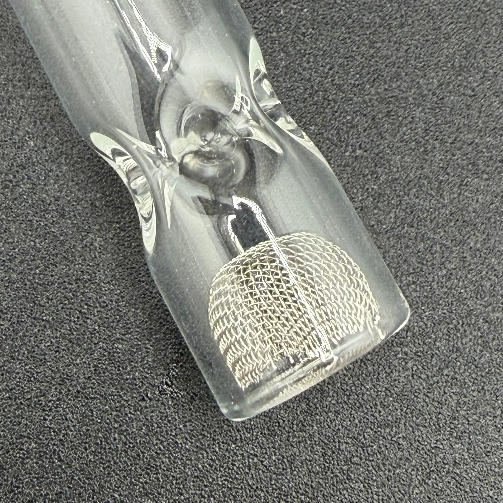 Borosilicate glass stem with cooling beads! Glass core is made in the USA by GoodVibesBoro, and has dimples by the bowl to retain the cooling balls. The mouthpiece side is open, and designed to be used in conjunction with a Z-mouthpiece to keep the balls contained.