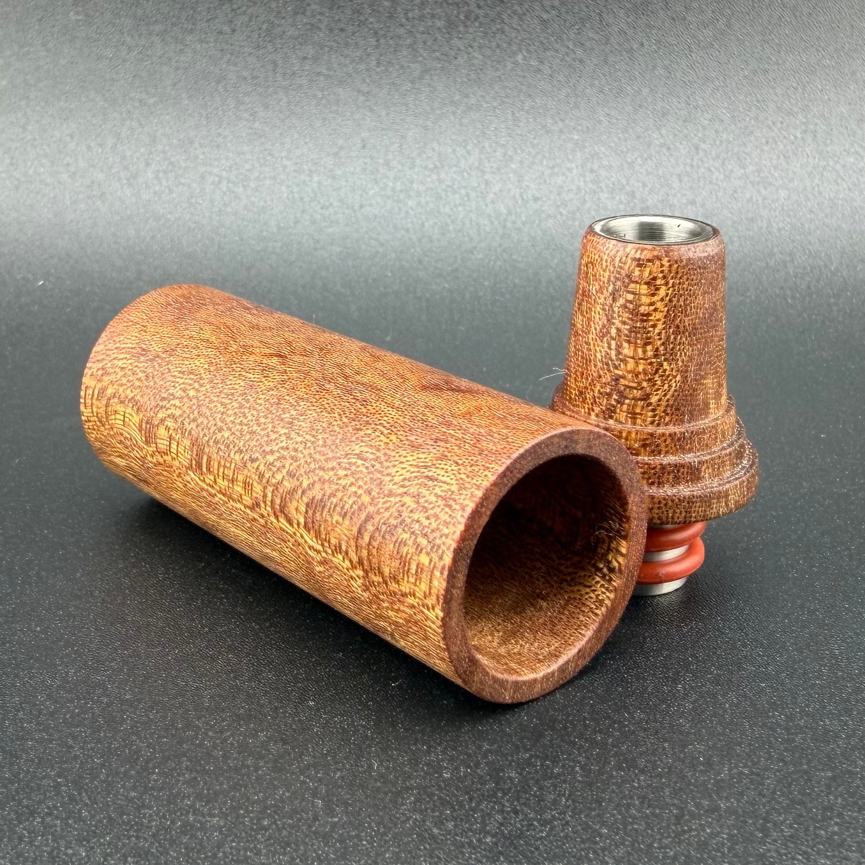 Wood and Titanium components are handmade by Zasquatch. The mouthpiece is lined with a Grade 2 Titanium insert for strength and durability.