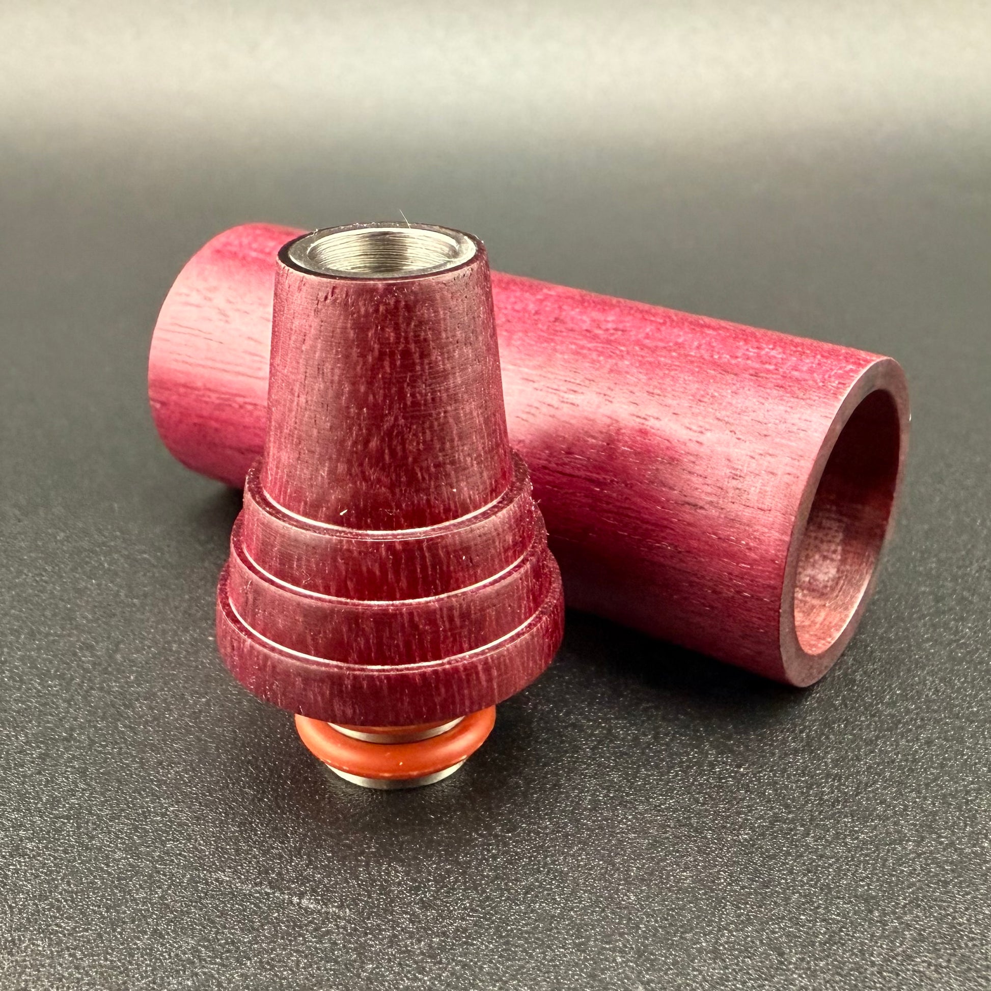 Matching wood sleeve and mouthpiece set for the Z-stem hybrid glass/wood system. This set is compatible with both the BAKx and 19/22 glass Z-cores (sold separately). Wood and Titanium components are handmade by Zasquatch.